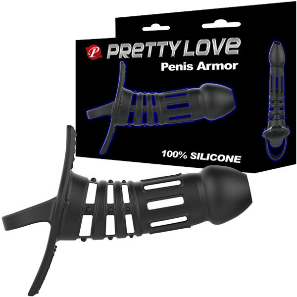 完全武装で超絶ロングプレイ!メディカルグレードシリコン製のペニスサック「プリティラブ ペニスアーマー」。鎧をイメージした重厚感漂う貞操帯のようなフォルムはまさに「アーマー」という表現がピッタリなペニスサックですが、肌を露出するサイドデザインなので挿入感を損なうことなくプレイ可能。先端部分も穴が空いており、装着したまま射精や排泄が可能です。