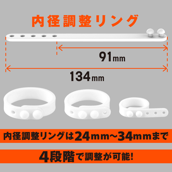 サラスベ質感でベタつき無し!伸縮性が高くて着けやすいソフトタイプのペニス用リング。皮戻りや持続力アップなどマルチに活躍!内径23mmの小、内径26mmの中、内径30mmの2連リングに加え、好きなサイズに調整できる内径調整リングの4個セットになっているので、個人の身体に合わせてお使いいただけます。素材は柔らかな高品質シリコンを採用◎