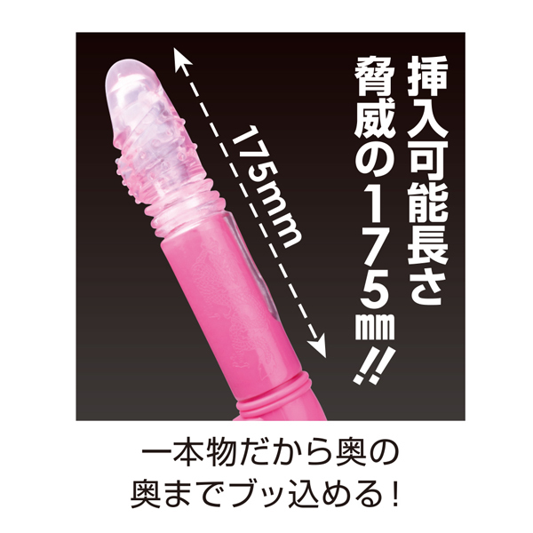 挿入可能な長さは約17.5cm!奥の奥まで突き上げる電池式ストレートバイブ(ピンク)。6Vの強力トルクで激しくピストン!奥を突くと同時にヘッド部分で振動刺激する♪他にもスイングアクション、36種類もの振動パターンを搭載。静音設計&生活防水の高性能バイブです。