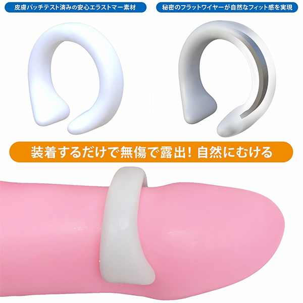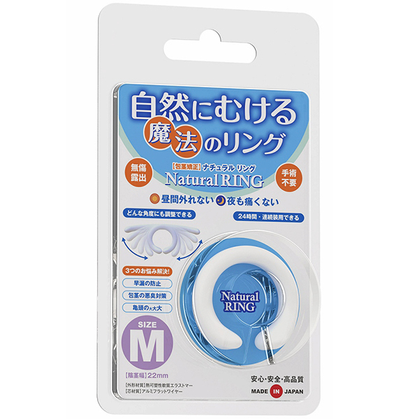 自然にムケる魔法の包茎矯正リング!「手術したくない」「自力で解決したい」そんなアナタに最適!清潔さを保ちながらスムーズな「脱皮」「成長」と「コントロール可能な持続力」を実現する魔法のリングです。自由に曲がる絶妙な硬度のフラットワイヤーを内蔵した「自然伸縮構造」により、これまでになかったフィット感を実現したので●昼夜兼用、24時間の連続装用。外れにくいから動きの多い昼間でも安心。Mサイズ