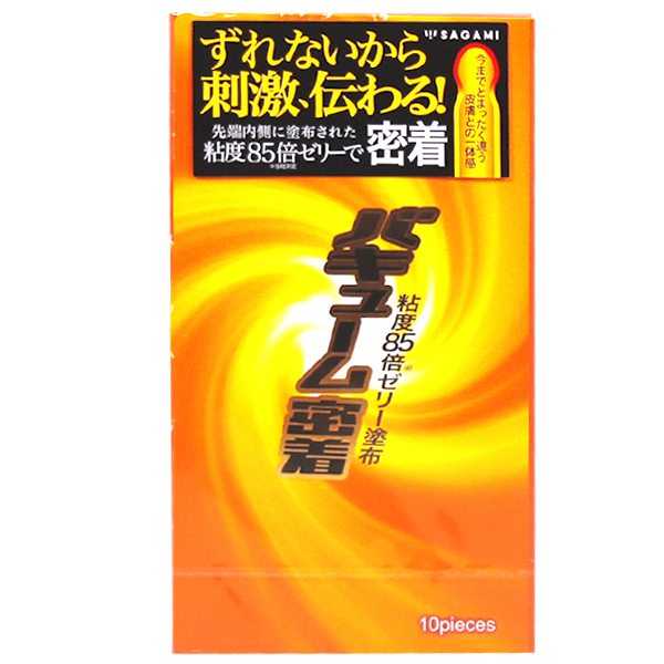 今までとまったく違う皮膚との一体感「バキューム密着」。コンドーム内側先端に当社既存商品に比べ粘度85倍のゼリーを塗布しています。コンドームとペニスを密着させることにより、ズレをなくし、刺激がダイレクトに伝わります。